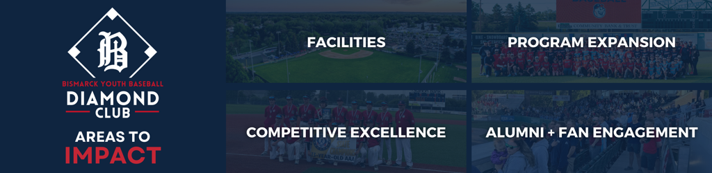 “We strive to achieve excellence in all areas of our program and the Diamond Club allows us to provide critical resources to accomplish our program goals. Your generosity will enable our staff to provide Bismarck Youth Baseball players with the best experience, both on and off the field. Additionally, the Diamond Club is an avenue for our players and staff to get to know you and to provide exclusive Bismarck Youth Baseball experiences. We all need you to become a valuable part of our TEAM!”